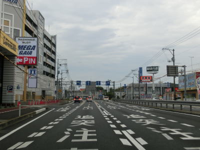 | 沿線の建物、交通量、信号機付きの交差点の多い片側3車線道路を走っているとR313・広島r22府中分かれ交差点を通過する。この交差点で左端車線がR313への左折車線になってしまうため、R2トレースにおいては真ん中もしくは右端車線を走っている必要がある。 | ||