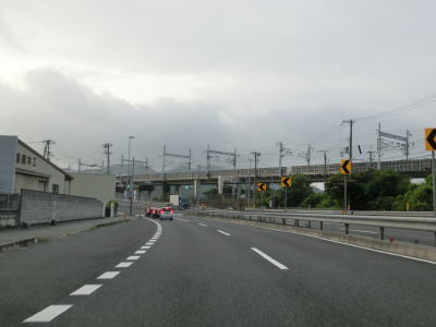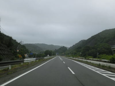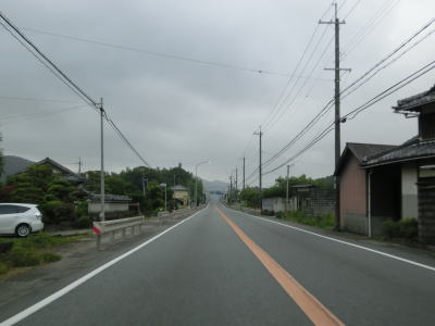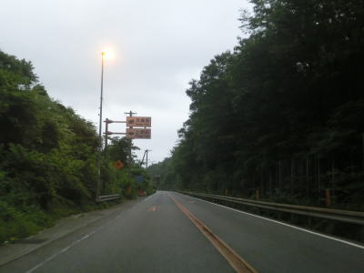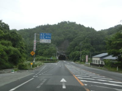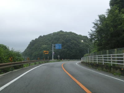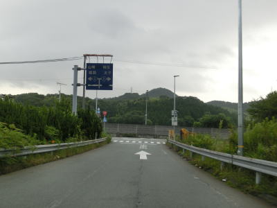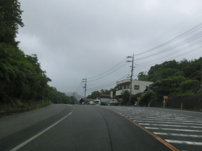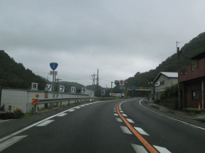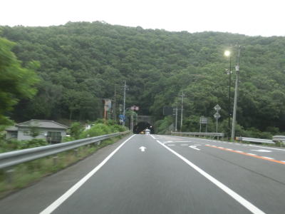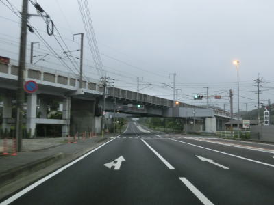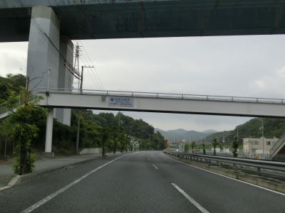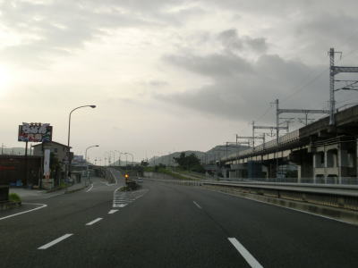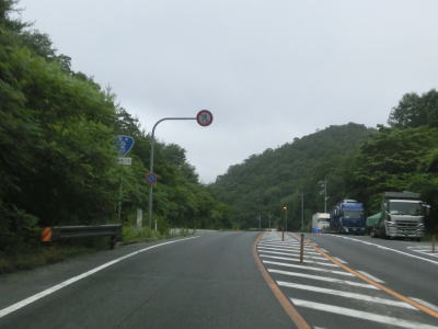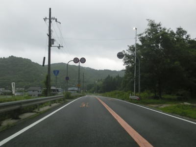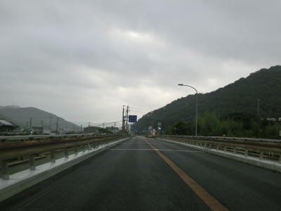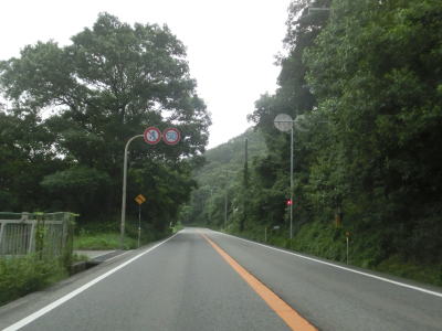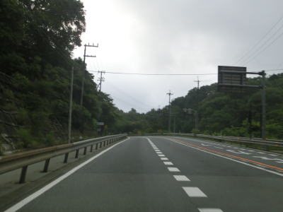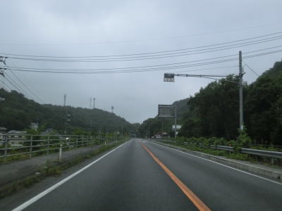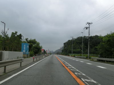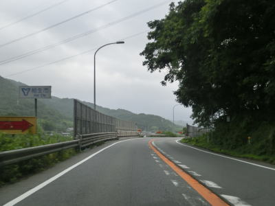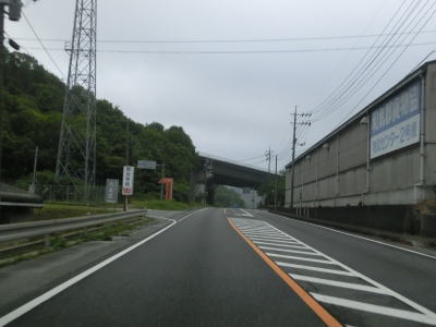 | 大東交差点を過ぎてすぐに車線が増えて4車線道路になり、その直後に山陽新幹線の下を通過する。雨量通行規制区間に入ったとは言っても沿線には集落があり、一桁幹線国道とあって道路状況も特別劣悪という訳ではない。名もなき峠に達すると登坂車線が終わって下り勾配となるが、反対の西向き車線には登坂車線が設置されている。 | ||