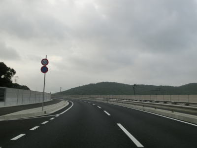 | 備前ICを過ぎると緩やかな勾配を上った後に下りとなり、市道との交差点を通過後に再び上りと下りを繰り返す。市道の交差点を挟んで南が兄坂、北が弟坂という名称があるようだ。弟坂の下りから上りに転じた後に三石第二隧道をくぐる。トンネルを出てすぐに岡山r96との交差点を通過するが、r96の本線は跨道橋でオーバーパスしており立体交差点となっている。 | ||