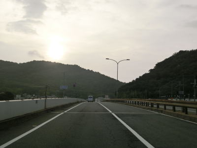 | 王子トンネルからはごく緩やかな下り勾配の片側2車線道路を走り、程なくして太子上太子JCTを通過する。案内標識にはR29姫路西バイパスと表記されているが、厳密に言えばR29の起点はひとつ北の上太子ランプなのでその間はR2の支線とも言うべき区間である。 太子上太子JCTを過ぎると城山トンネルに入る。全長は1000mを越えておりR2のトンネルの中でも長い方である。トンネルを出ると太子東ランプとなるが、このランプは太子竜野バイパスと姫路バイパスの境である。太子竜野バイパスは無料開放の際に旧道はR179と兵庫r725に降格したが、姫路バイパスの現道は国道の指定を受けたままである。今回は現道を走るため側道に進む。神戸・大阪方面に向かうのであればバイパスを走る方が良いだろう。 |