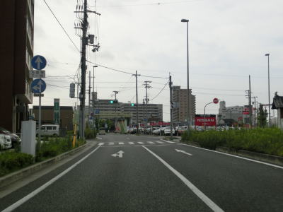 | 649.兵庫r387高砂北ランプ東交差点 | 650.JR山陽本線をオーバーパス | 651.商業施設が目立つ |