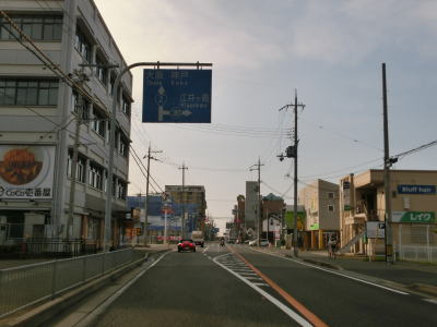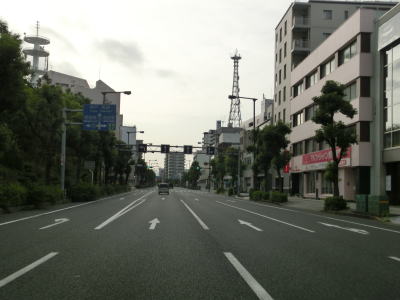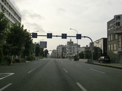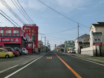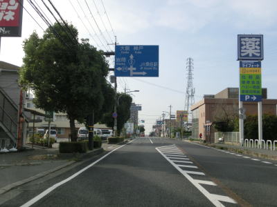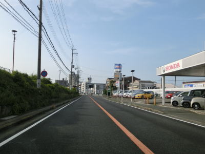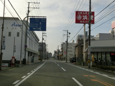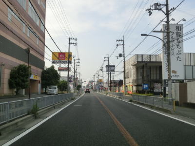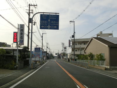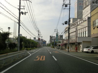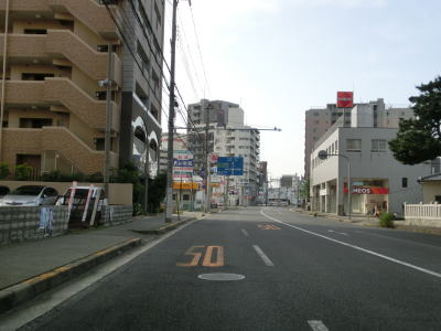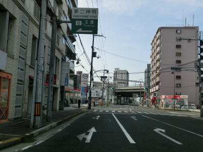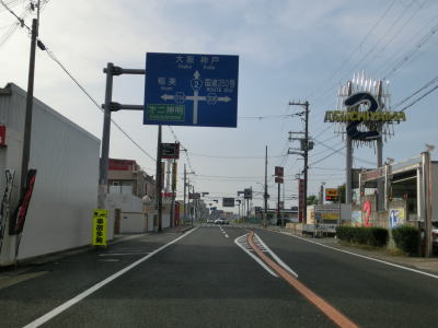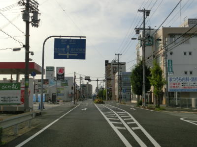 | 今宿西交差点から200m強東の市道との今宿交差点からは東向きの一方通行となる。と言っても酷道にありがちな狭路ではなく3車線もあり、歩道も両側に設置されている。左端車線はバス優先車線(7〜9、17〜19時)となっている。 | ||