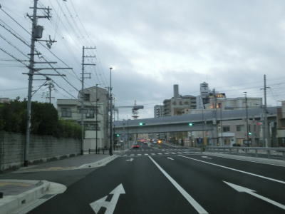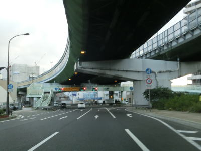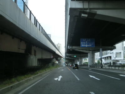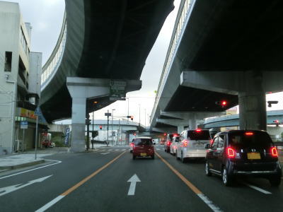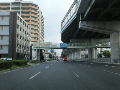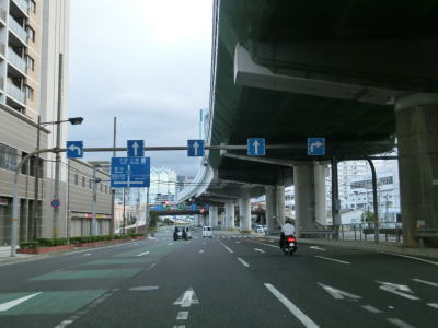 | 729.左側の2車線はR2浜手バイパス | 730.浜手バイパスと阪神高速3号神戸線に挟まれている | 731.弁天町交差点 |