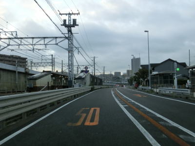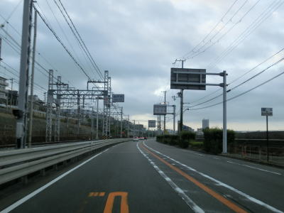 | JR山陽本線と隣接した状態を並走していると緩やかな左カーブを曲がりながら緩やかな勾配を上り、林崎橋でJR山陽本線をオーバーパスする。走行した日は東側で架橋工事が行われており、前後の区間を合わせて多車線化されるものと思われる。 | ||