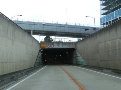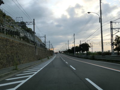 | 兵庫r487への側道が分岐した先でアンダーパスを通過する。明石海峡大橋はかなり高い位置にあるのでその下を通るだけであればアンダーパス構造にする必要はないが、市道(兵庫r487)の跨道橋があるためこのような形になっているのだろう。アンダーパスを出ると平面道路にもどり、JR山陽本線と隣接並走を続ける。明石海峡大橋付近の山陽電鉄は少し内陸を走っている。 | ||
