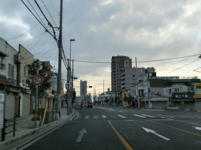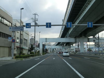 | 東川崎交差点を過ぎても車線は減らずに片側4車線道路が続いている。しかし約100m先でR2浜手バイパスと現道との分岐があり、バイパスは厳密な国道トレースができなルートである。よって現道を走るためには右側の2車線を走っている必要がある。バイパスの高架と阪神高速の高架に挟まれた状態の片側2車線道路を走り、バイパスが右方向に逸れた所で弁天町交差点を通過する。 | ||