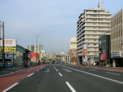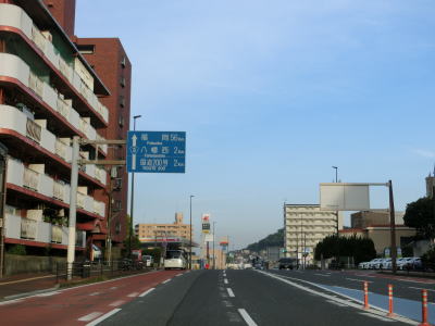 | R3黒磯バイパスが北西に逸れて行った後に八幡隧道をくぐる。トンネルと言っても上にあるのは山ではなくJR鹿児島本線の八幡駅の駅前ロータリーである。八幡隧道から出てすぐに左側に車線が増えて6車線道路になる。福岡r50前田交差点からは左端車線がバス・二輪車専用車線(7-9:30,17-19・日曜休日を除く)になる。 | ||