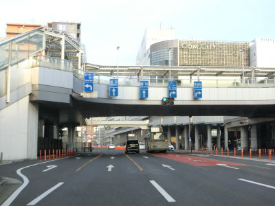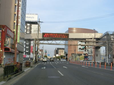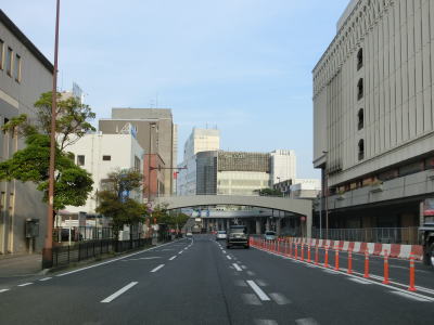 | 福岡r273藤田3交差点を過ぎて黒崎駅の手前で左端車線が減少し、直後に黒崎駅前交差点を通過する。駅の南西には区役所があり、八幡西区の中心部と言える。八幡駅の前とは異なり、交差点の上にあるのはペデストリアンデッキである。 | ||
