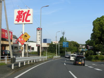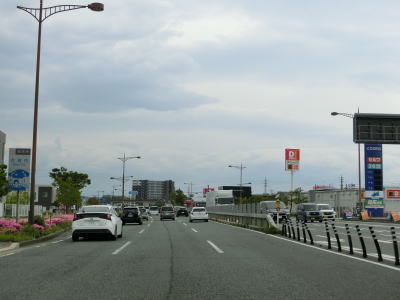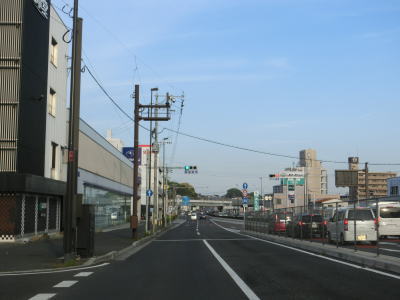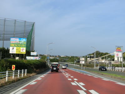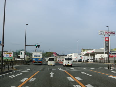 | 53.片側2車線道路が続く | 54.某トヨタ系ディーラーの展示車両 | 55.交通量は多い |