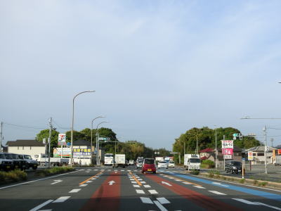 | 新宮町に入ってからも沿線には商業施設が建ち並んでおり交通量も多い。福岡r539上府交差点、福岡r540大森交差点を通過するが、どちらの交差点も右折する車両が非常に多かった。 | ||
