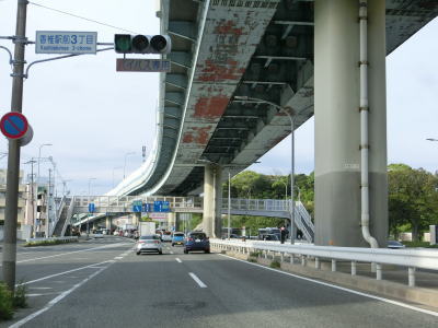 | 西郷川橋で西郷川と福岡r30の上を越えるとr30とのランプを通過する。r30からの側道がそのまま左端車線となり、以降は片側3車線道路になる。当然ながら交通量は非常に多い。 | ||