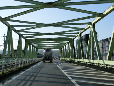 | 市道との馬場交差点を渡って新矢部川橋を渡る。上下線が別々の橋であり、南向きの橋の右側はゼブラゾーンと南詰の交差点の右折車線になっている。橋の入口の上部にカバーで覆われた標識らしき物と橋に入ってすぐの場所に赤色に×印の信号機が設置されおり、路面電車が敷設されていたと思しき遺構だが、検索しても該当する路線を見つける事ができなかった。新矢部川橋を渡ってからは旧立花町に入り、沿線の建物が少なくなって見通しの良い2車線道路を走る。 | ||