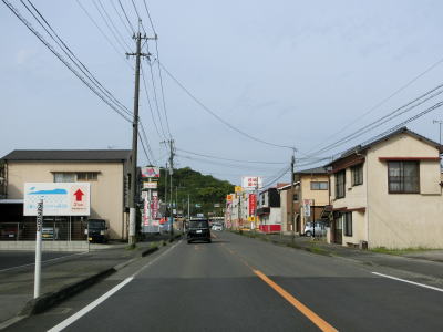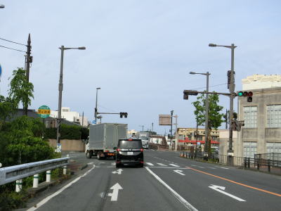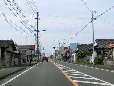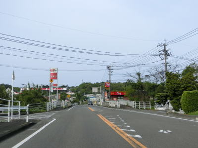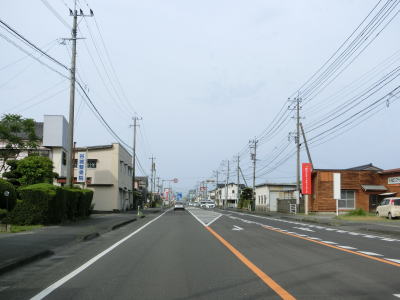 | 海沿いを通っている市道(港湾道路?)の月の浦橋の傍でやや急な左カーブを曲がる。その先の右カーブを曲がると肥薩おれんじ鉄道から少し離れる。市街地を過ぎて交通量はやや少なくなり信号機付きの交差点も殆どないため流れは良くなる。一時期に離れた肥薩おれんじ鉄道の跨道橋をくぐる。 | ||