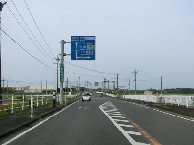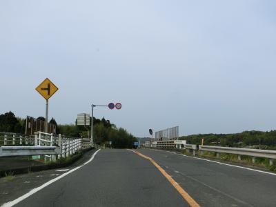 | さらに直線道路を走っている出水大橋を渡る。短いながらも橋の前後に勾配がある。鹿児島r367荒崎入口交差点の先にある中川橋も前後に緩やかな勾配がある。鹿児島県に入ってから案内されているツル渡来地は荒崎入口交差点を右折する。中川橋を渡って少し走ると鹿児島r368屋地交差点を通過する。r368はR3/E3A南九州道の野田ICが接続している。 | ||