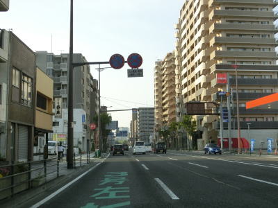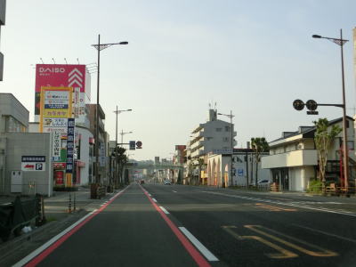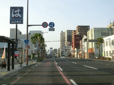 | 南向き3車線+北向き2車線の変則的な5車線道路で南下を続ける。南向きの3車線のうちの左端車線はバス・二輪専用車線である。7〜9時の2時間のみだが、平日のみが指定されているケースが多いがここでは曜日を問わずバス・二輪専用車線となるようである。鹿児島r206・r208下伊敷交差点を過ぎてからも変則5車線道路が続いている。鹿児島市の中心部に近付くため徐々に沿線の商業施設が多くなる。 | ||