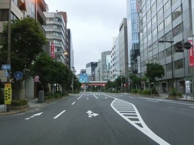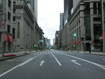 | R4の起点は日本の国道界の重鎮(?)の交差点、日本橋である。R4の他にR1(〜大阪府大阪市)とR6(〜宮城県仙台市)、R14(〜千葉県千葉市)、R15(〜神奈川県横浜市)、R17(〜新潟県新潟市)、R20(〜長野県塩尻市)の合計7本もの国道の起点となっている。日本橋の中央部が起点で、北はR4・R6・R14・R17の重複区間、南はR1・R15・R20の重複区間である。橋の周辺にはモニュメントや里程標、道路元標のレプリカなどが設置されており、橋上には道路元標が埋め込まれている。 | ||