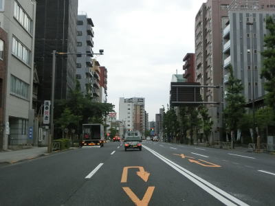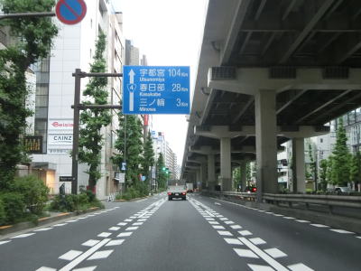 | 本町/本町3交差点からは首都高1号上野線に仕切られた片側2車線道路になる。右側車線がなくなった直後に本町/本町3交差点のアンダーパスしてきた本線に合流して片側3車線になり、その辺りで区界を通って中央区から千代田区に入る。紺屋町交差点を通過すると首都高の本町入口が右方向に分岐する。 片側3車線道路を走っていると東京r302岩本町交差点を通過するが、右折車線が設置されておらず右折はできない。r302の地下には都営地下鉄新宿線が通っており交差点下に岩本町駅がある。神田川に架かる和泉橋を渡った直後の交差点で左端車線が秋葉原駅前南通りへの左折専用車線になるが、交差点の先も片側3車線道路が続いている。JR総武線のガードをくぐり、和泉橋から北は東京メトロ日比谷線が地下を通っている。 |