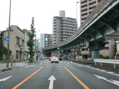 | 8.首都高1号上野線に仕切られた片側2車線道路 | 9.東京r302岩本町交差点 | 10.JR総武線のガードをくぐる |