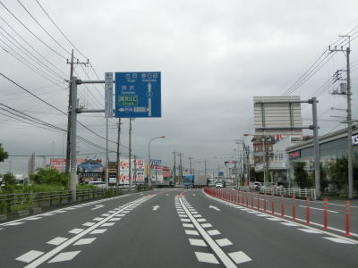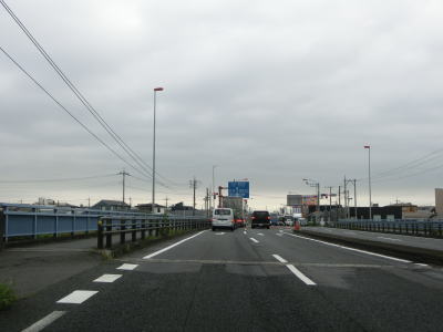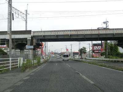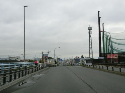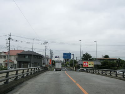 | 家屋と集合住宅、商業施設が混在している中を通っており、たとえバイパスが開通している現道であっても昼間は交通量が多いであろう事は容易に想像できる。4.5mの制限高のある東武野田線の跨道橋をくぐって埼玉r2・r10一宮交差点を通過してから埼葛橋を渡る。埼玉県と葛飾区を結んでいそうな橋の名称だが、両岸とも春日部市域である。 | ||