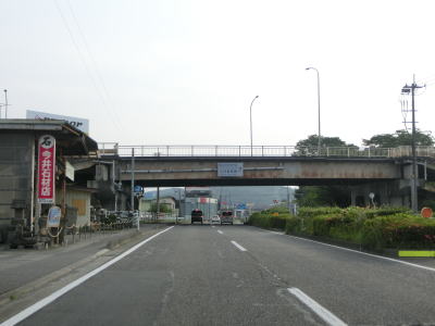 | 国道の上を斜めに横断する東北新幹線の高架橋をくぐってすぐに福島r37米村道北交差点を通過する。さらに少し走ると白河橋で阿武隈川を渡る。岩下橋付近から和尚壇交差点にかけては商業施設が多かったが、市街地を通り抜けていないためごちゃごちゃ感は薄い。 | ||