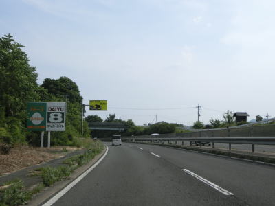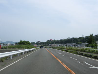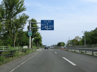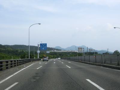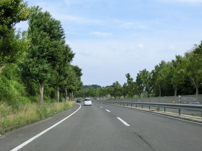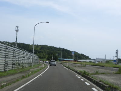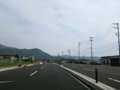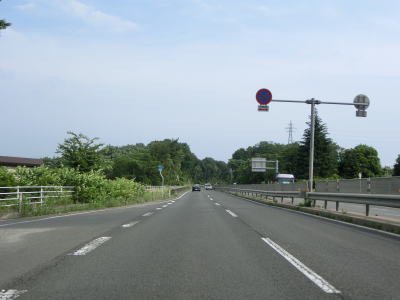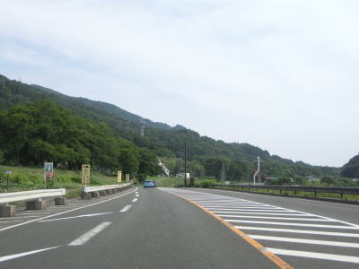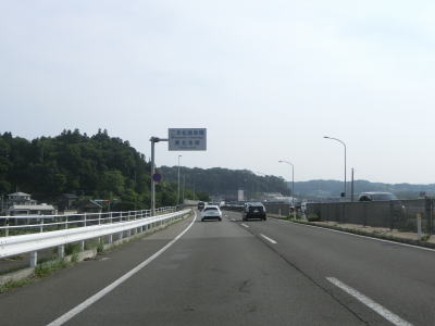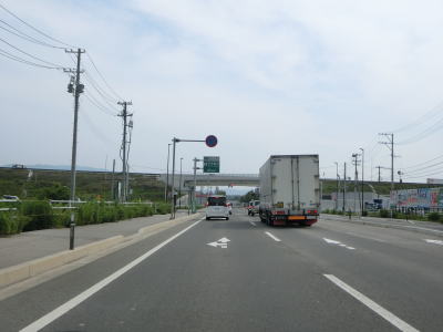 | 対面2車線道路になるものの多車線化工事が始まっており、遠からず片側2車線区間が延伸されるものと思われる。上下線両側に設置された簡易パーキング付近は風が通り抜ける場所のようで横風注意の警戒標識が設置されている。 | ||