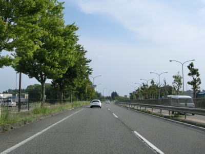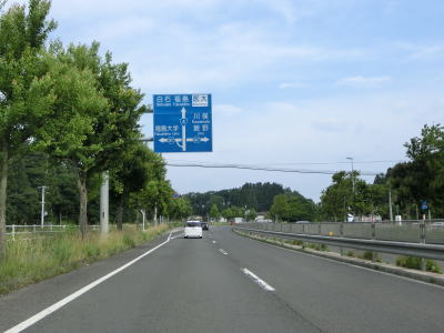 | 緩やかな下り勾配の片側2車線道路を走っていると福島r307とのランプを通過する。さらに下っていると福島r114とのランプを通過する。立体交差化された交差点が多く高規格道路のような状況だが、あくまで通常の道路である。駐停車は禁止されているが、人の乗降は許されているようである。もっとも沿線に建物がある訳ではないので人の乗降のために駐停車するような場所とは思えない。 | ||