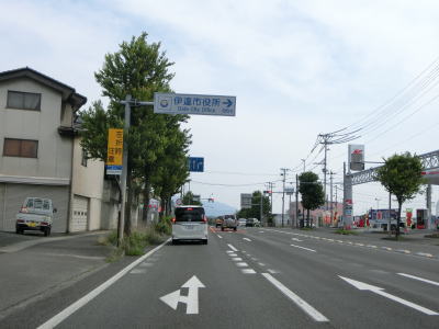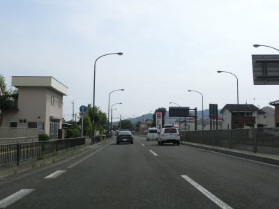 | 緩やかなカーブが連続している緩やかな勾配をひたすら下って行く。急勾配に注意を流す標識が設置されているものの、酷道ではないためそこまで急な勾配でもない。住宅地の出入口でもある市道との伏拝交差点を通過してからも下り勾配が続く。 | ||