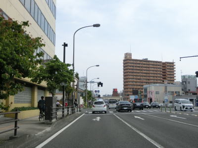 | 大仏橋を渡り終えてすぐにR13・R115舟場町交差点を通過し、直後の市道との北町交差点を右にカーブするようにして通過する。福島市の中心部と言える場所のため沿線には中高層の建物が多く、交通量も多い。 舟場町交差点から500m弱でR114・R115仲間町交差点を通過する。舟場町交差点はR13の起点、仲間町交差点はR114の起点である。R115はどちらの交差点においてもR4に重複している。 |