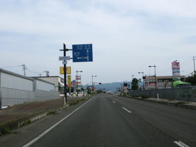 | 白石市の市街地に近付くと平坦になると同時に開けた場所に出る。宮城r24交差点を通過するが、周辺には広い駐車場を備えた郊外型の商業施設が多い。片側2車線道路を北上しているとR113白石ICを通過する。R115と同様にR4を挟んで続いており、この交差点は起点でも終点でもない。 | ||
