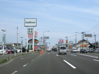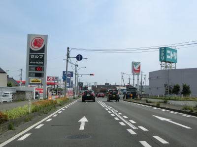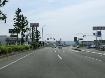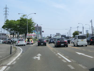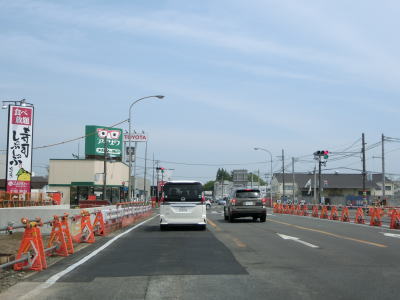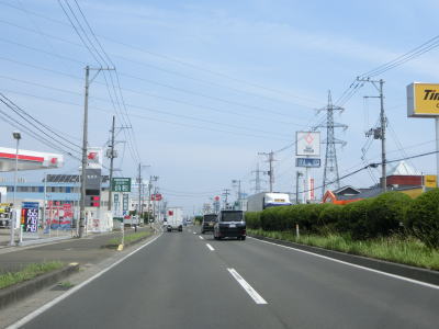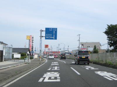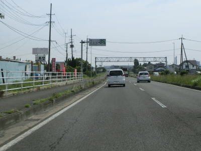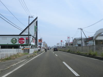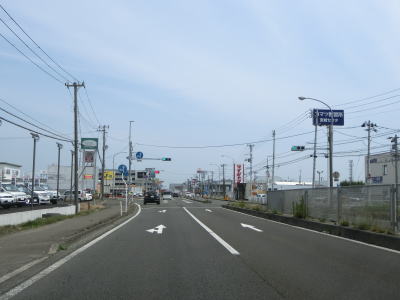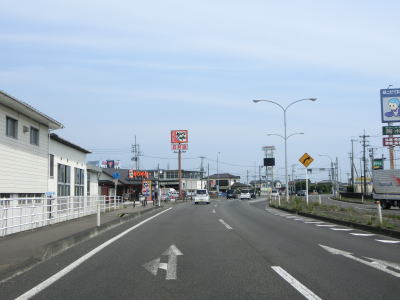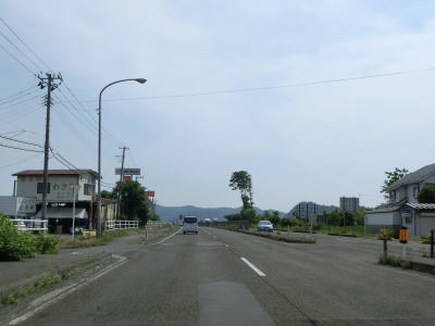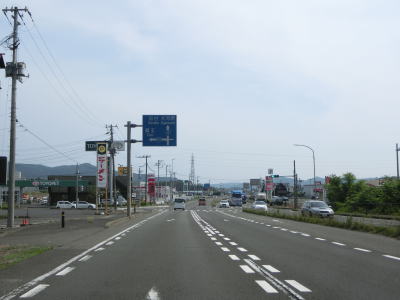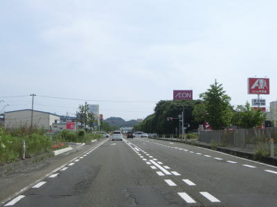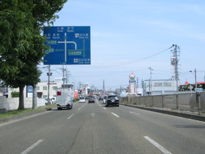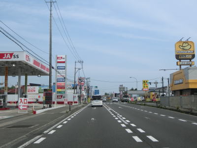 | 片側2車線道路を走っているとE4東北道の白石ICを通過する。インター橋の田中前橋をくぐって少し走ると蔵王町に入る。町の中心部から離れた場所の割に沿線には商業施設が多い。 | ||