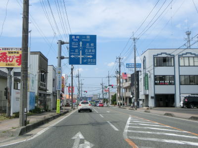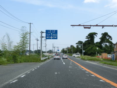 | 築館バイパスが並走している区間に入ってからも道路状況には特に変化は見られず比較的走りやすい2車線道路が続いている。緩やかな右カーブを曲がって緩やかな勾配を下ると栗原市の中心部に差し掛かる。市役所の東を通り過ぎて少し走るとR398伊豆野原交差点を通過する。 | ||