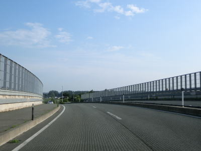 | 川口こ線橋からは右にカーブしながら緩やかな勾配を下っていると川口南大橋を渡る。北上川の右岸を走っていると川口北大橋を渡り、少し走ると川口バイパス北口交差点を通過する。ここで交差しているのは旧道だがr157ではなく町道になっている。バイパスと合流してからも2車線道路が続いているが、路側帯が狭くなってしまう。 | ||