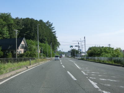 | 茨島跨線橋を下り切った後は中央分離帯に背の高い街路樹が植えられている。両側及び中央の街路樹がなくなって日当たりの良い場所に出ると同時に市境を越えて滝沢市に入る。道路の東側を中心に商業施設や住宅地があるが滝沢市の中心部ではない。沿線の建物が途切れると同時に再び街路樹の植えられた片側2車線道路になる。中央分離帯が広く街路樹もあるため反対側車線が視認できず対面2車線道路に見えなくもない。 | ||
