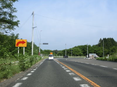 | 登坂車線のある勾配を上っていると奥中山高原跨道橋の下で町境を越えて一戸町に入る。一戸町に入ってからはほとんど勾配のない状態になる。岩手r30奥中山高原駅口交差点を通過した後に緩やかな緩やかな勾配を上っていると十三本木峠を越える。集落に近く勾配が緩やかなだが、標高は458mありR4の最高地点である。 | ||