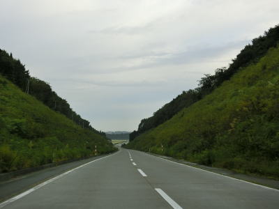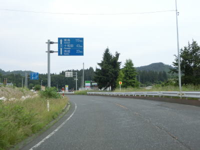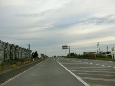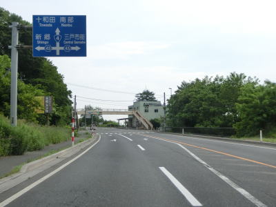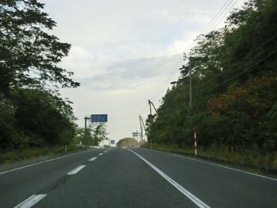 | 青森r168交差点からは集落の途切れた場所を走る。少しだけ下った後に緩やかな勾配を上っていると名もなき峠を越えて十和田市に入る。十和田市に入ってからは勾配もカーブもほとんどない2車線道路を走る。 | ||