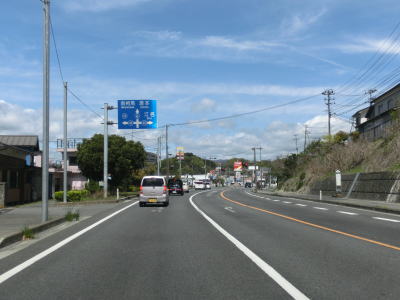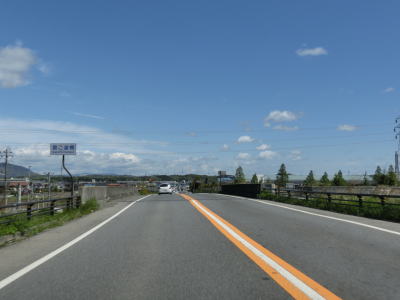 | 住吉交差点からはバイパスとは異なり対面2車線となり湯元方面に進む。バイパスが全線開通しているが、現道の改良が加えられており走行した日も車線を増設する工事が行われている最中であった。工事箇所を過ぎると2車線道路を少し走り、右カーブの先で片側2車線道路になる。 | ||