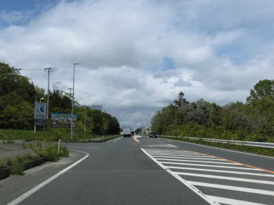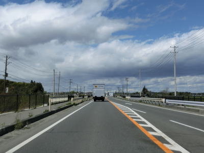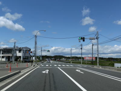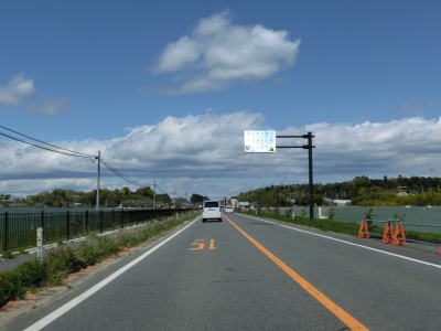 | 2車線快走路と淡々と走っていると津波浸水区間の終わりを知らせる標識を通過する。前述の通り、震災から5年経過しているため、浸水区域の内外で景色に特に変化はない。福島r262交差点と福島r261交差点を通過してからは緩やかな勾配を上る。 | ||