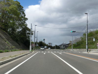 | 宮城r122バイパス交差点からは下りとなるが勾配は緩やかで走りやすさに変化はない。平坦な状態になってから程なくして宮城r122現道との神宮寺交差点を通過する。JR常磐線の西側を走っていると緩やかな勾配を上ってから常磐線をオーバーパスして東側に移るが、線路からは離れていく一方である。宮城r52田沢交差点を通過し、家屋が点在する中を走り抜ける。 | ||