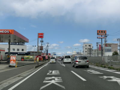 | 坂元交差点を過ぎると上り勾配となり、宮城r44の旧道の上を通り過ぎてからR6では珍しい北向き車線に登坂車線が現れる。登坂車線の距離は約900mで峠部分を越えて下りになってからもしばらく続いている。緩やかな勾配を下っているとr44の旧道との交差点を通過するが、r44のソトバがまだ残っていた。その後は緩やかアップダウンを繰り返しながら直線基調の2車線道路を北上する。 | ||