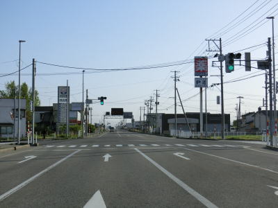 | R113十文字交差点を過ぎてからも平坦な2車線道路が続く。沿線の家屋が多くなる辺りで新潟r182坂町交差点とr182藤沢交差点を相次いで通過する。r182は坂町停車場金屋線という路線名である事から坂町交差点〜藤沢交差点間は重複区間だろう。 | ||