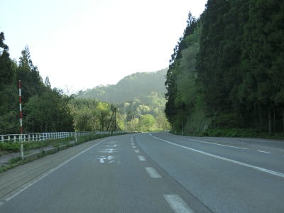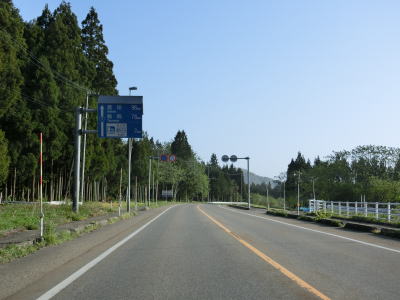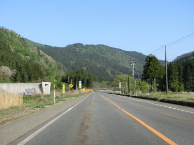 | 大須戸川の谷筋と言える場所に差し掛かるが比較的開けており道路状況も変わらず走りやすい。E7日本海東北道が西側に近接した状態になり、交差予定地点の少し南で大須戸除雪基地の前を通る。この辺りで(仮称)大須戸ICと(仮称)大須戸第二ICが設置される予定である。 | ||