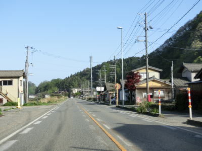 | 勝木川の右岸を走っていると北田中パーキングを通るが、ここには公衆トイレが設置されている。下大鳥トンネルをくぐった先で長坂洞門をくぐり、引き続き勝木川の右岸を走る。 | ||