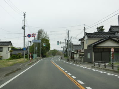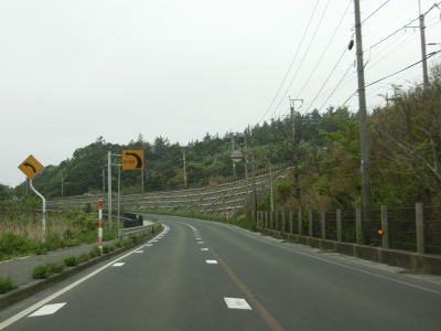 | 郵便局前交差点からの緩やかな左カーブを曲がっているとE7日本海東北道の仁賀保ICを通過する。その後はJR羽越本線とE7日本海東北道に挟まれた状態になる。標高20〜30mの位置を走っており日本海のある西側が低いのだが、眺望が利く場所は意外に少ない。 | ||