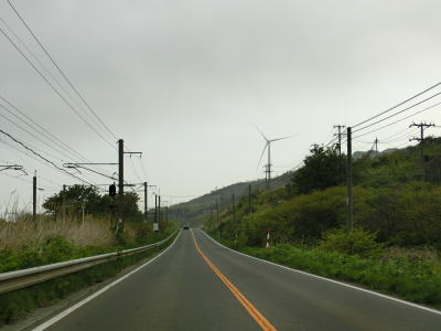 | 278.E7日本海東北道・仁賀保IC | 279.E7日本海東北道と並走 | 280.前方に見えているのは西目西ノ沢風力発電所の風車のひとつ |