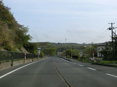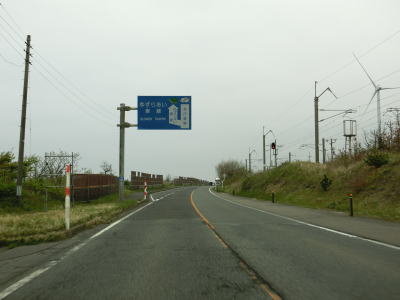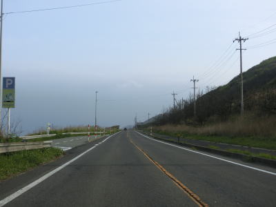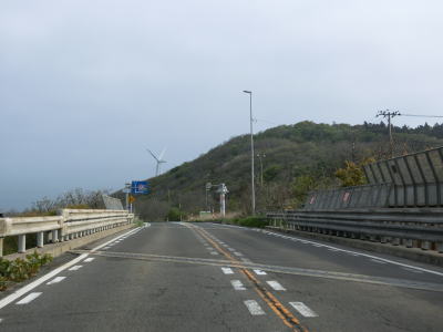 | 緩やかなアップダウンを繰り返しながら、また日本海を望みながら2車線道路を快走する。強風が吹きつける地域とあって風力発電用の風車が点在している。荒々しい雰囲気ながら道路状況は良好である。 | ||