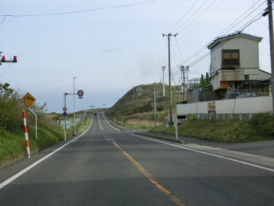 | JR羽越本線の東を北に向かって走っていると南向きの反対側車線にゆずりあい車線が設置された区間を通る。延長は約1.0kmと結構な長さである。道川こ線橋の直後に側道が分岐するが、道の駅「岩城」の出入口に当たるため道の駅に寄るには側道へ進む必要がある。 | ||