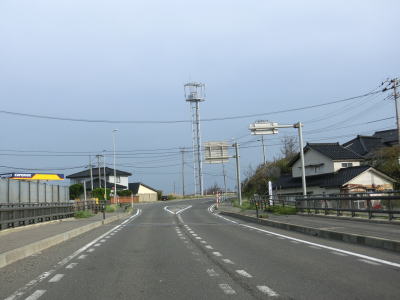 | 由利本荘市の中心部から離れると沿線の家屋が少なくなる。日本海に面した少し高い位置を通っており、遮る物がない場所は横風に注意を促す警戒標識が設置されている。三川道路公園という標識が掲げられたもしもしピットの前を通るが、“公園”となっているもののベンチや東屋もなくただの駐車スペースでしかない。 | ||