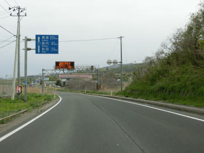 | 305.南向き車線にゆずりあい車線あり | 306.「青森225km 能代83km 秋田23km」 | 307.道の駅「岩城」は側道へ進む |