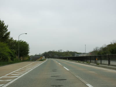 | 雄物大橋を渡り終えてすぐに秋田r65南浜ランプを通過し、側道が合流する辺りで緩やかな右カーブを曲がる。片側2車線道路のまま秋田市の市街地に到達すると思いきや、右側車線が減少して対面2車線道路に戻る。 | ||