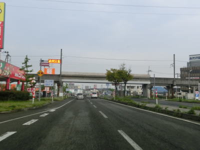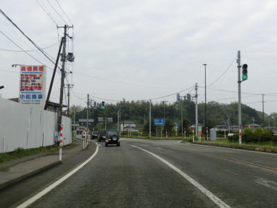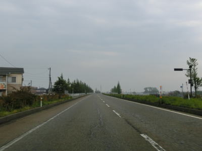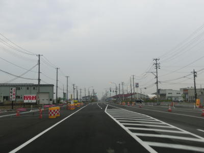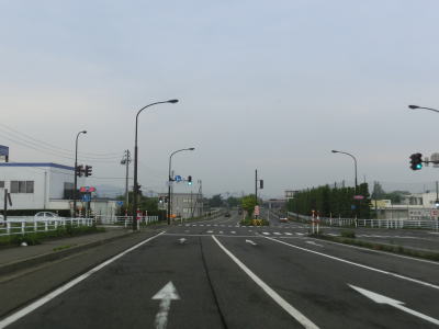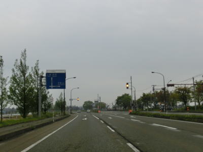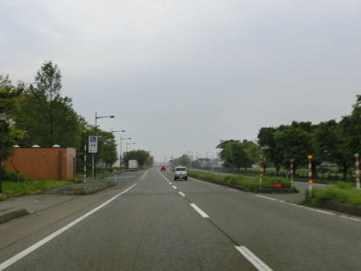 | 田畑と工場が混在する中を走っていると上越新幹線の高架橋の下を通過する。高架の南にある福島乙交差点付近だけ拡幅されていたが、距離が短いため車線の増設には至っていなかった。その後しばらく対面2車線道路を走るが、新潟r256千把野交差点の手前で車線が増えると同時に中央分離帯が現れて片側2車線道路になる。 | ||